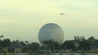Space Shuttle Endeavour flies over Epcot and Magic Kingdom at Walt Disney World