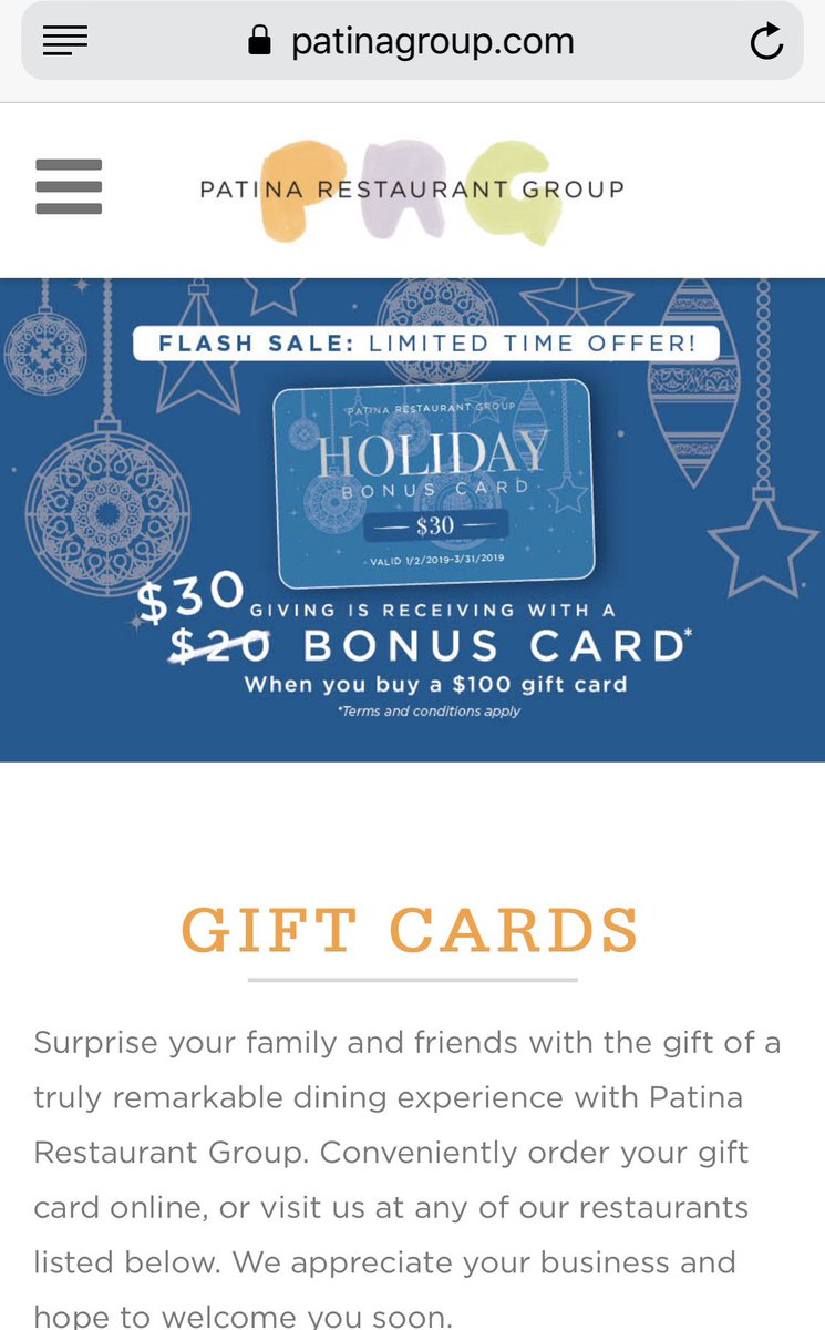 Got a WDW meal scheduled at a participating Patina Group restaurant? Take a look at the bonus $30 offer, when buying $100 GC, for use 1/2-3/31/19. https://t.co/bPhNtjXSGW