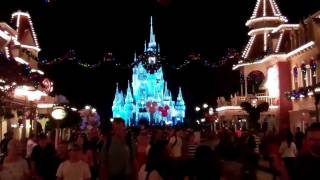 WALT DISNEY WORLD MAGIC KINGDOM CHRISTMAS DECORATIONS AT NIGHT